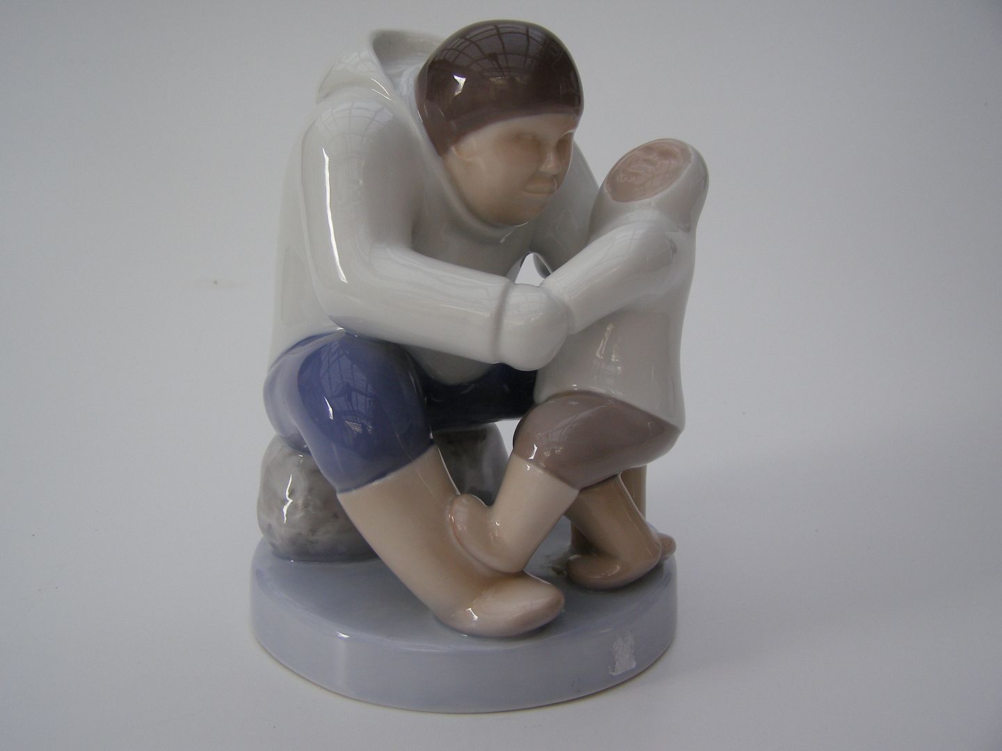 B&G2412 Grønlænder med barn,sign. Simon, 1. sort, H: 19,5cm. D:14cm.