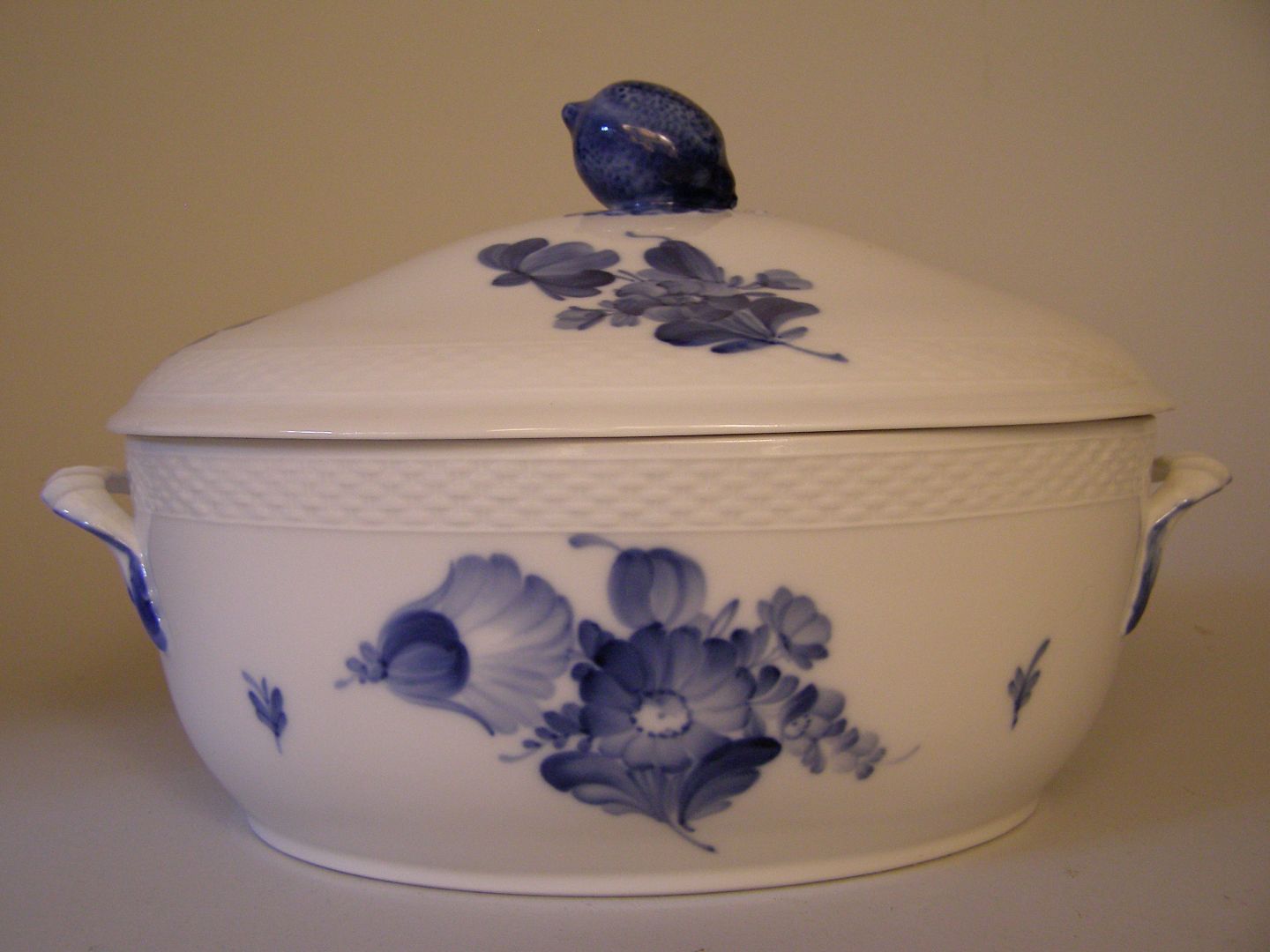 Royal Copenhagen, 10/8172 Terrin, h:18cm. l:30cm. Blå Blomst Flettet
