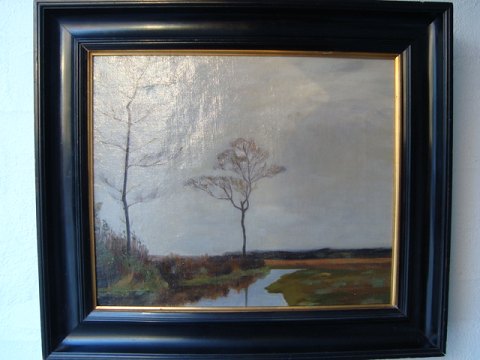 Maleri - ubekendt kunstner - Nøgne træer ved vandløb.
