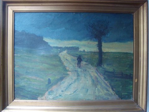Maleri af ubekendt kunstner - Mand på vej - Søndergaards stil.