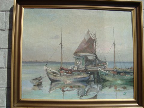 Maleri af Jens Sinding Christensen - Fiskekuttere i havn.