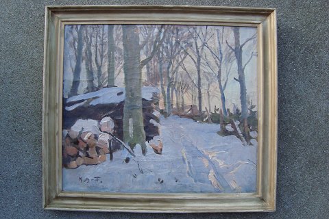 Maleri af Aage Bernhard-Frederiksen "Vinterparti fra skov"