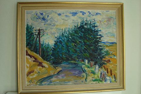 Maleri af Einer Johansen 1956 - Vej gennem landskab.