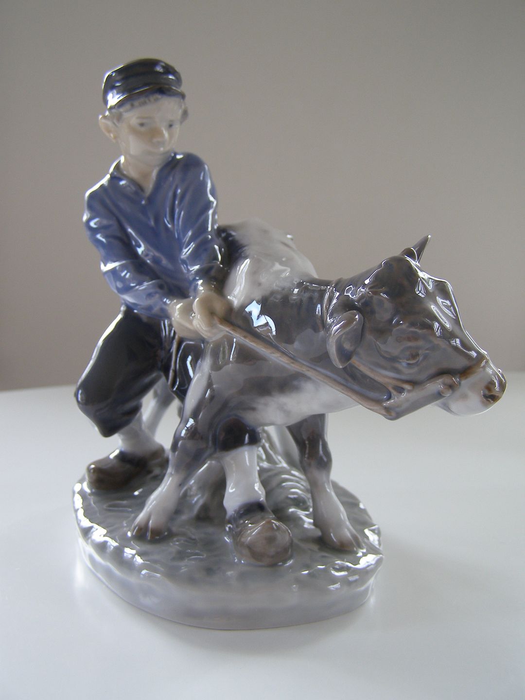 RC 772 Dreng med kalv Chr. Thomsen 1. sort. H:17cm. L:18cm.