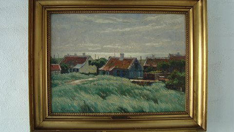 Maleri af Hans Kruuse - Parti fra Skagen med vue ud over huse.