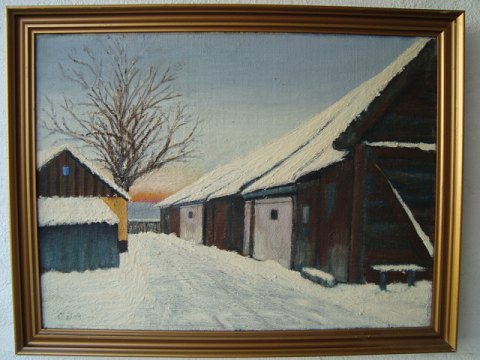 Maleri af C.J. Andersen - Gårdeksteriør, vinter.