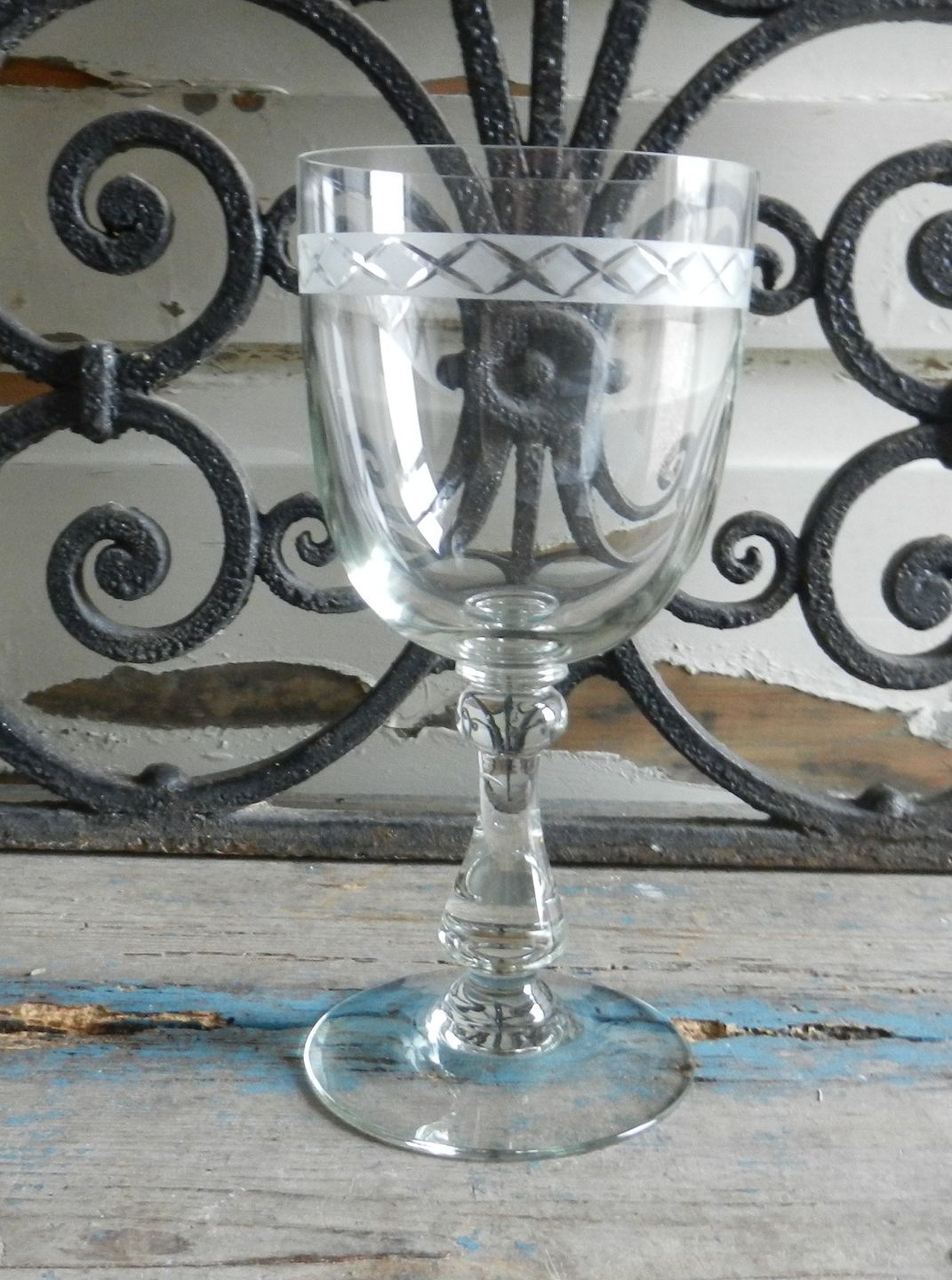 Pokal/porterglas med kryds slibning.