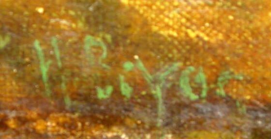 Ubekendt kunstner (19. årh.): Landskab med personer. Olie på lærred. Signeret.: H. Bayer. 48 x 65 cm.