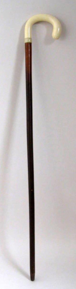 Spadserestok, o. 1900, i mahogni med håndtag i imiteret elfenben. L.: 90 cm.