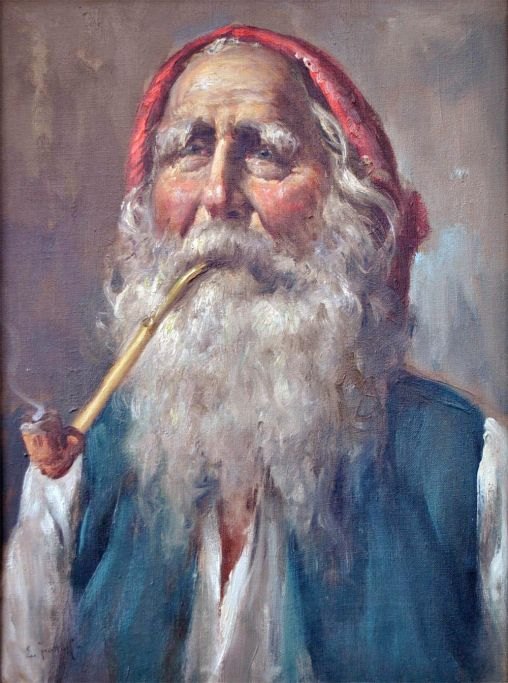 Frattini, Enrico (1890 - 1968) Italien: Portræt af en fisker. Olie på lærred. Signeret.: E. Frattini. 40 x 30 cm.