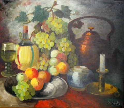 Gert, Edith (1906 - 1983) Danmark: Opstilling. Olie på lærred. Signeret.: E. Gert. 60 x 70 cm.