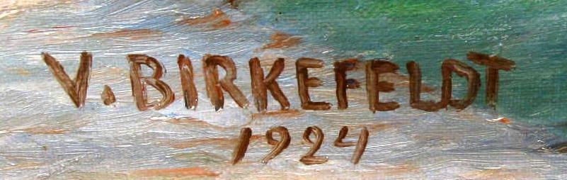 Birkefeldt, V (19./20. årh.) Danmark: Parti fra Den gamle By, Aarhus. Olie på lærred. Signeret.: V. Birkefeldt. 52 x 73 cm. Med samtidig forgyldt ramme.