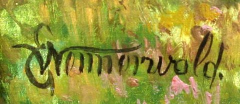 Wennerwald, Emil (1859 - 1934) Danmark: Parti fra Himmelbjerget. Olie på lærred. Signeret.: E. Wennerwald. 47 x 73 cm. Med samtidig forgyldt ramme.