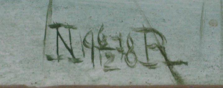Ryberg, Niels (1946 -): Haven i sne. Olie på masonit. Sign.: Monogram 6.12.1978. 24 x 35 cm. Endvidere signeret på bagsiden med titel. Med ældre bronzeret ramme.