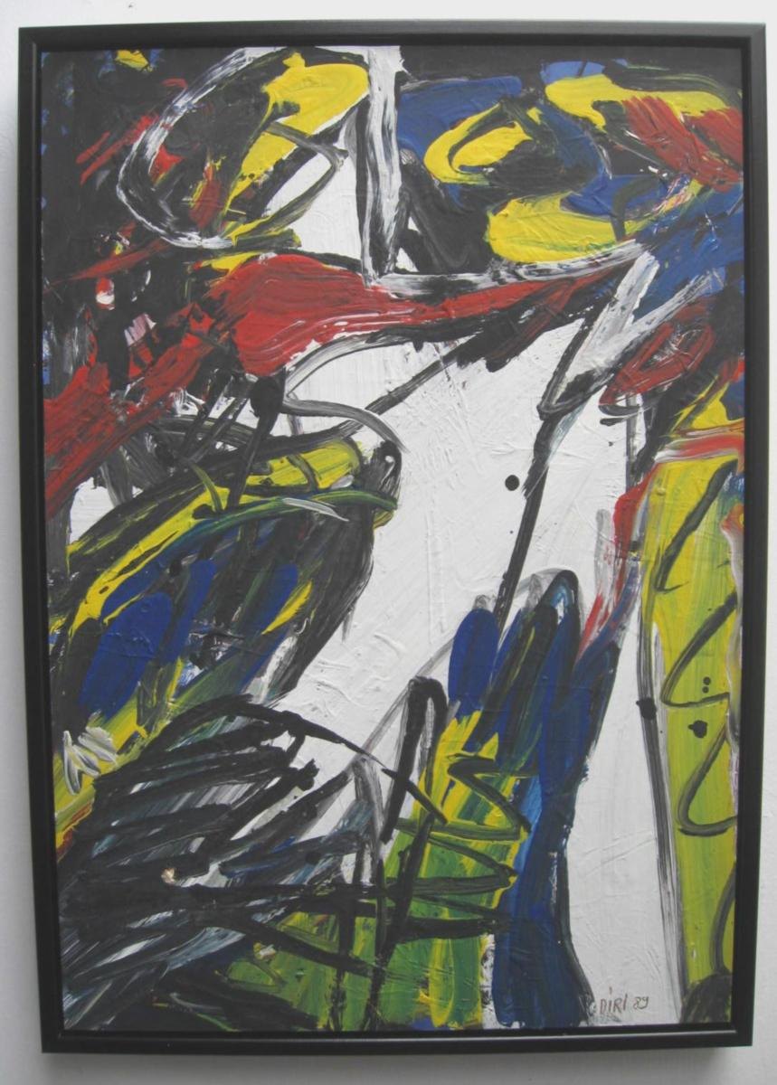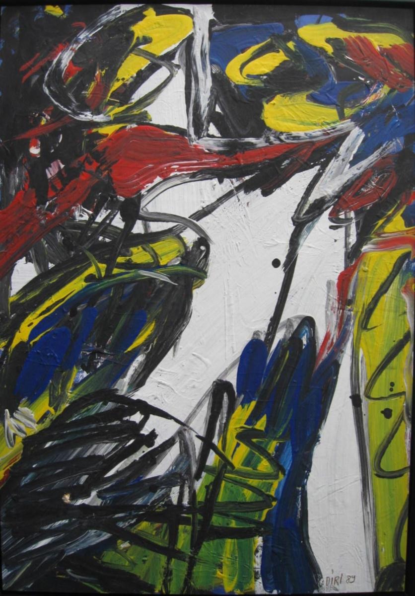 Strauch, Diri (1940 - ) Tyskland: Komposition. Acryl på papir/pap. 50 x 36 cm. Signeret.: Diri 89 Proveniens.: Drakabyggets Samling, Sverige. Cecilie Zwick - Nash samling.