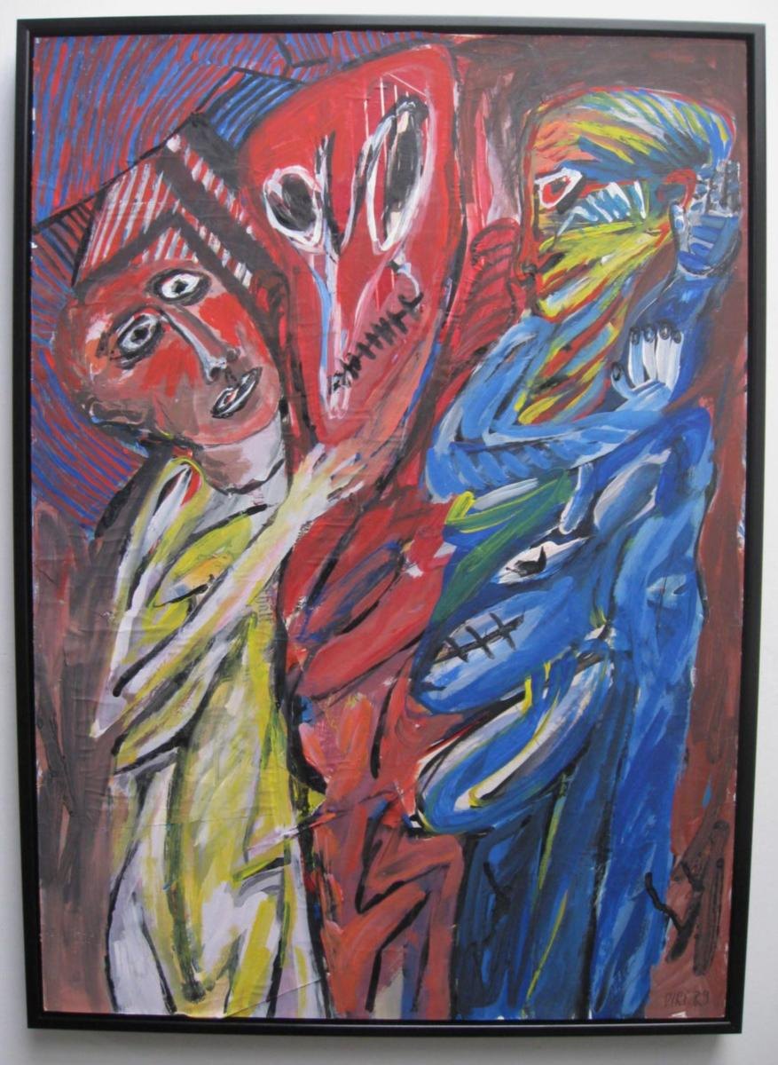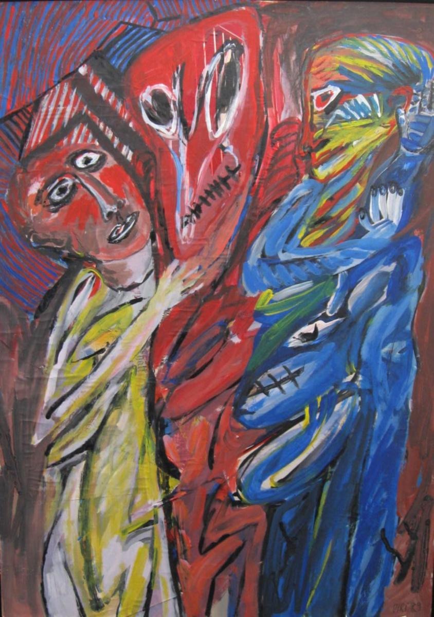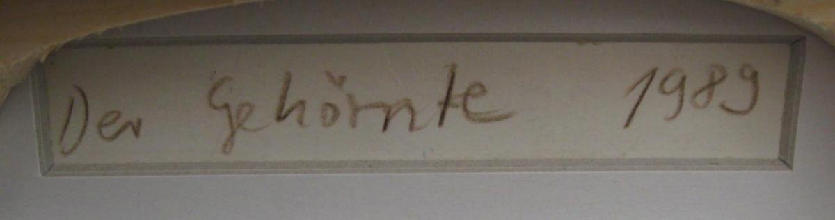 Strauch, Diri (1940 - ) Tyskland: Der Gehörnte. Acryl på papir/pap. 62 x 43 cm. Signeret.: Diri 91. Proveniens.: Drakabyggets Samling, Sverige. Cecilie Zwick - Nash samling.