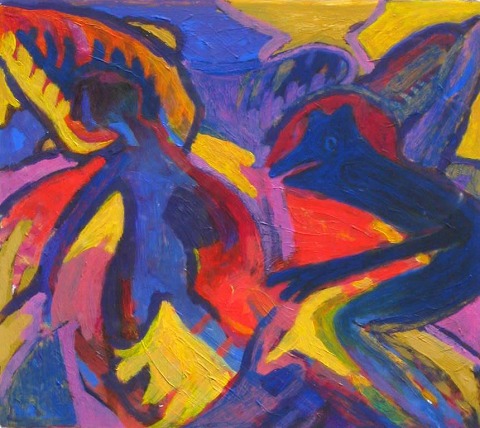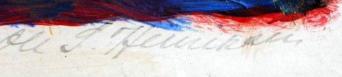 Henriksen, Ole Stenholm (1943 - ) Danmark: Brændsel til forvandling. Olie på papir. 32 x 29 cm. 1985. Signeret.: Ole Stenholm Henriksen. Indramme i alu ramme. Tidligere solgt ved Art Gallery, Århus.