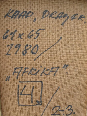 Rasmussen, Preben Kaad (1938 - 1994) Danmark: Afrika 4. Acryl på plade. Signeret.: Kaad. 61 x 65 cm.