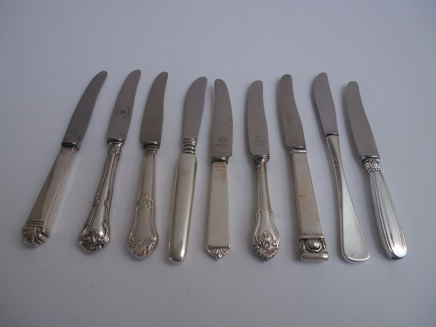 Taskeknive af sølv, Danmark ca. 1920.