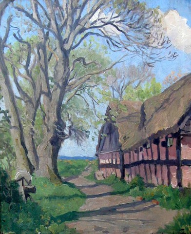 Bernhardt-Frederiksen, Aage (1883 - 1963) Danmark: Forårsdag ved Bondegården, Brabrand, Aarhus. Danmark. .