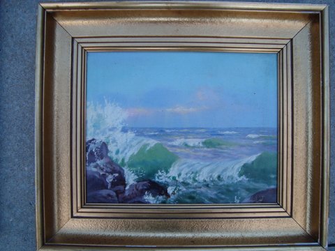 Maleri af B. Rung - Brænding mod kysten.