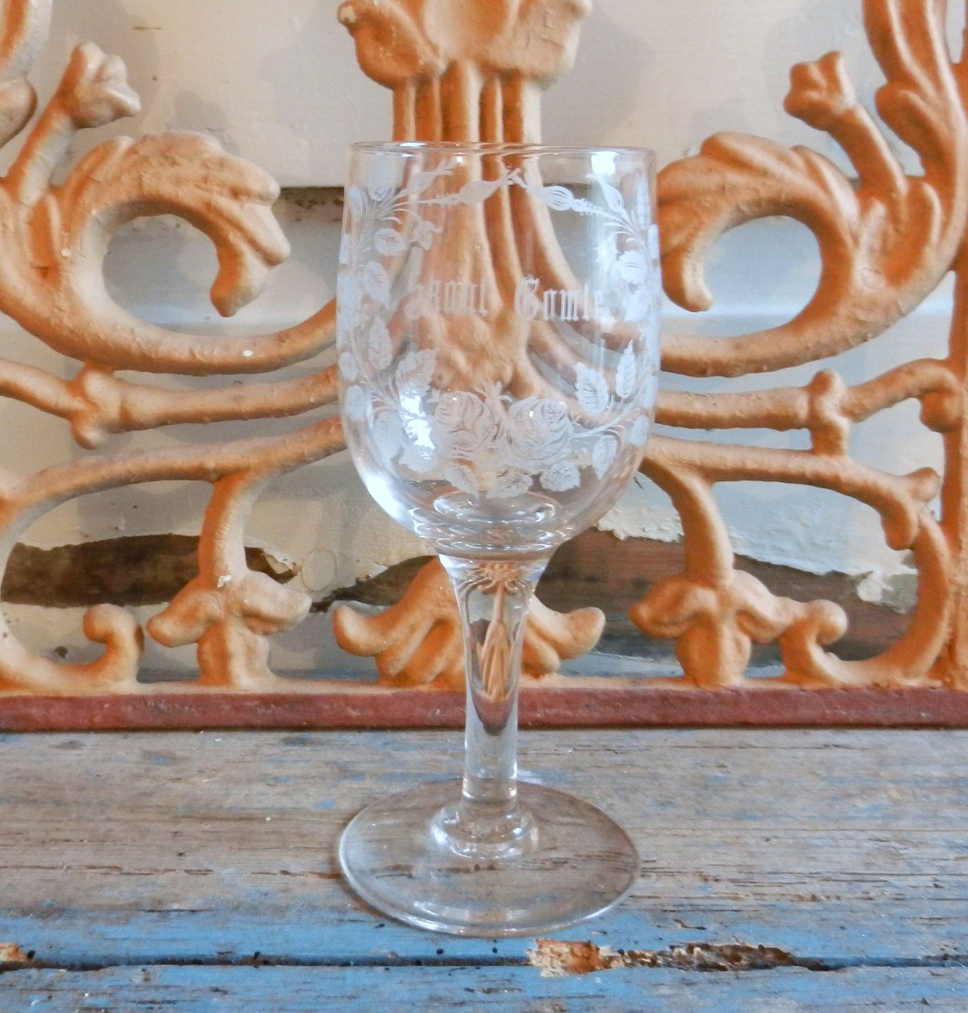 Don Carlos erindrings glas med teksten "Skål gamle"