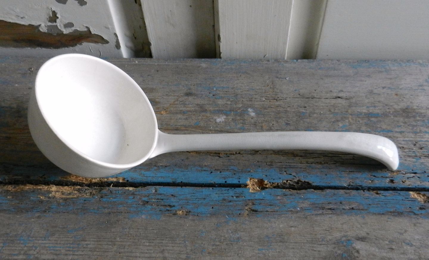 Cremefarvet fajance øse
