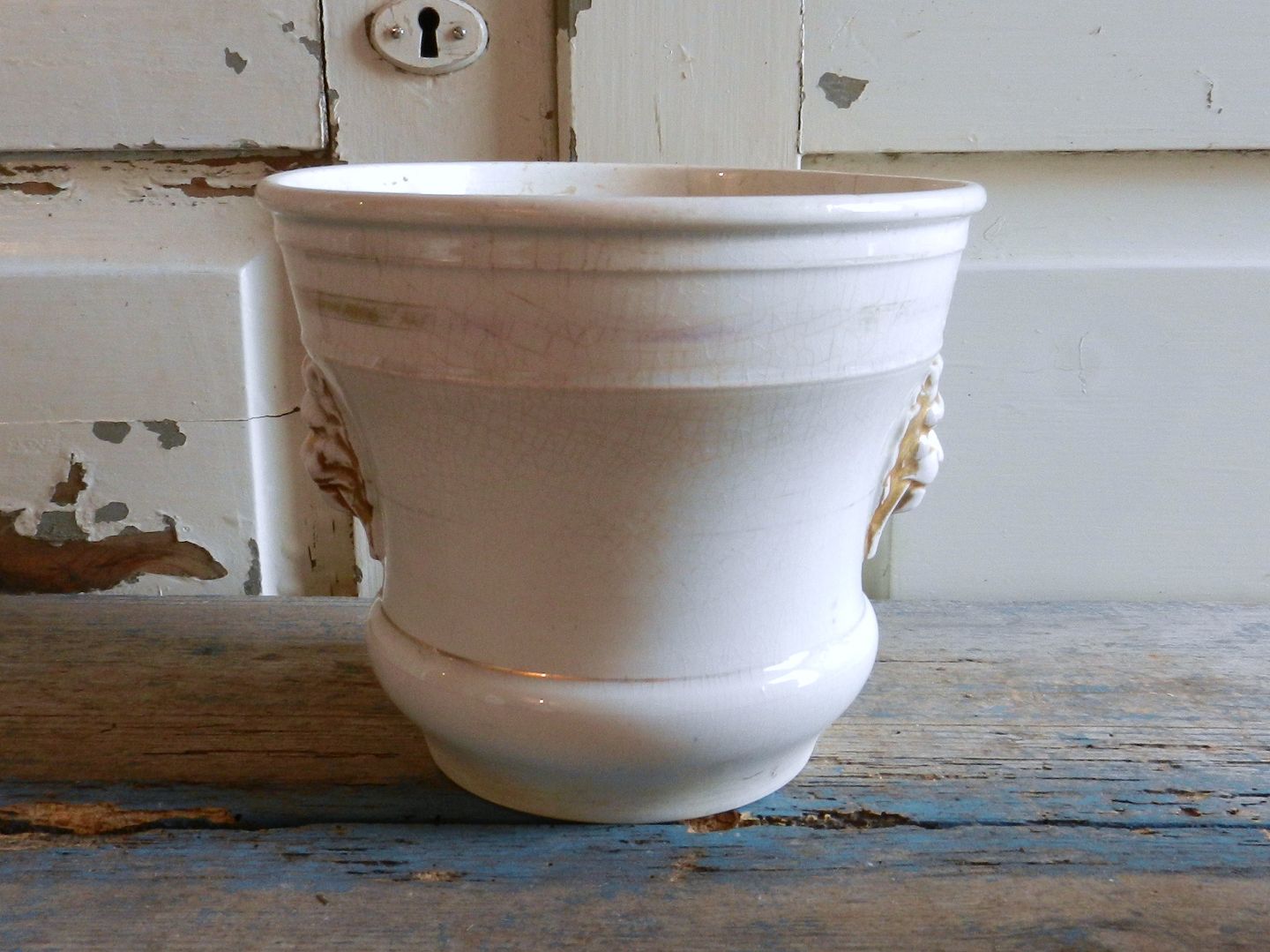 Fajance urtepotte med løve masker, dekoreret med guld.