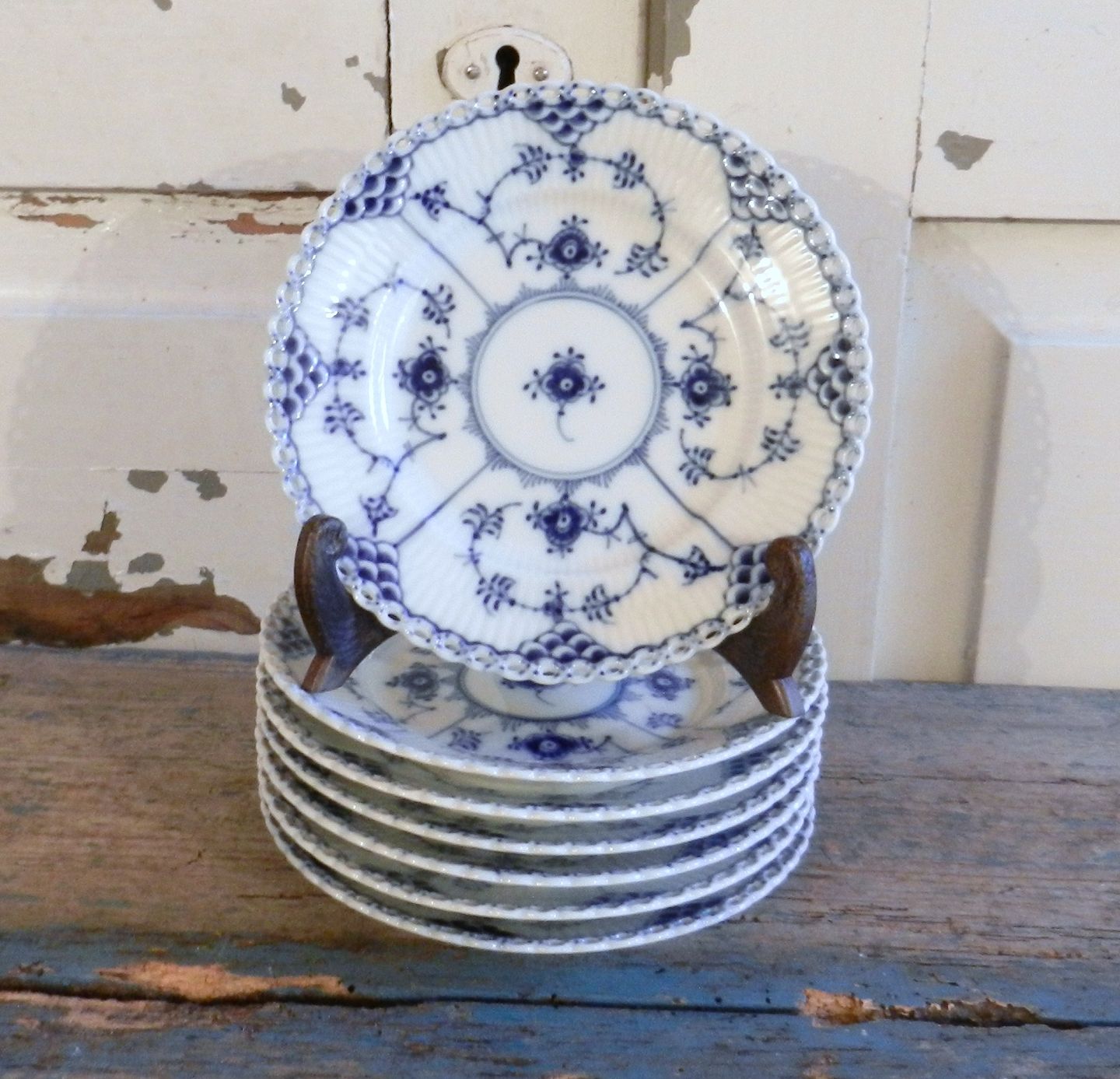 Text zugänglich auf Dänische: Royal Copenhagen Musselmalet helblonde kagetallerken no. 1088