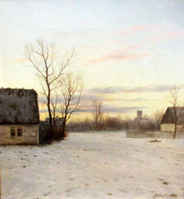 Larsen, Adolph (1856 - 1942) Danmark: Landsby motiv - vinter.