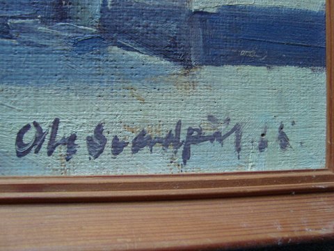 Maleri af Ole Sværdpiil - Vinterparti fra baggård 1965.