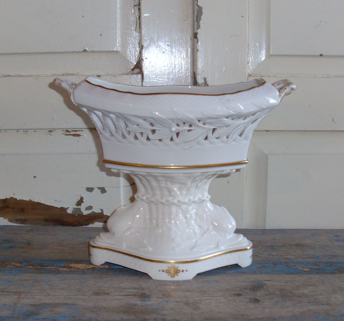Royal Copenhagen smuk opsats med delfiner og laurbær, enkelt dekoreret med guld.