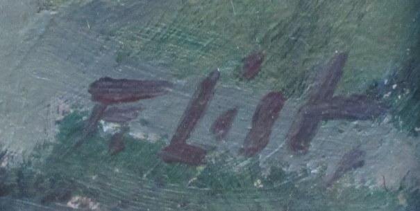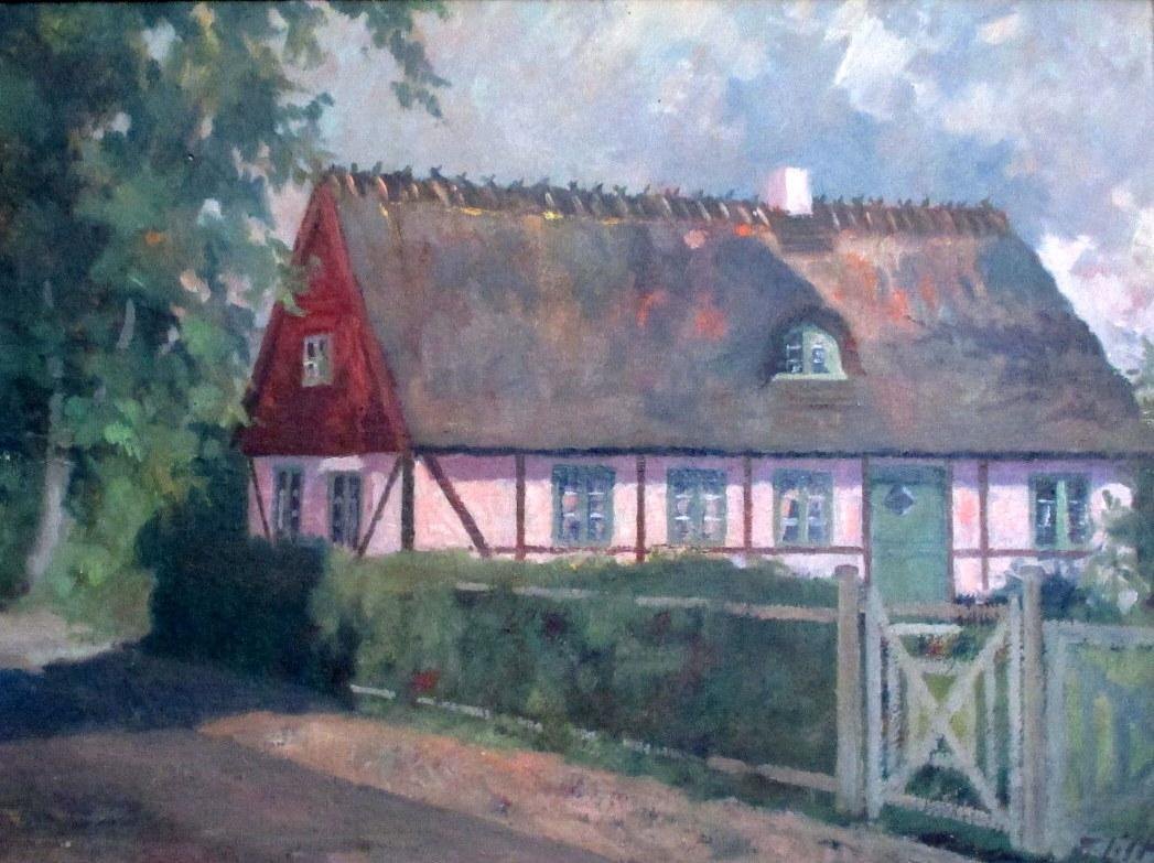 List, Franz (1898 - 1986) Danmark: Et bindingsværkshus. Olie på masonit. 21,5 x 28,5 cm. Signeret.: F. List. Motivet er antagelig fra Fanø.