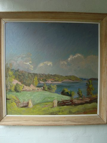 Maleri af Folmer Bonnén - Udsigt fra kunstnerens sommerhus i Sverige.