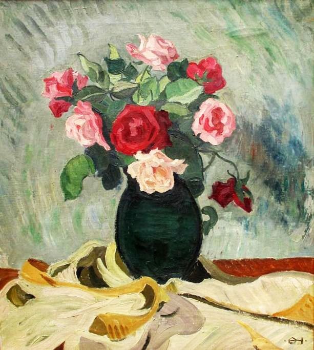 Ølund-Hansen, Edvard (1887 - 1979) Danmark: Opstilling. Olie på lærred. Signeret.: Monogram. 52 x 63 cm.