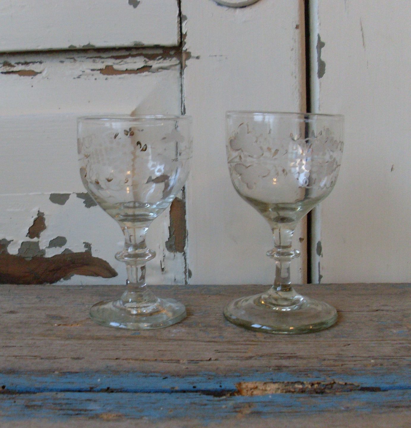 Par tyske vinglas med vinløv, dekoreret med guld.