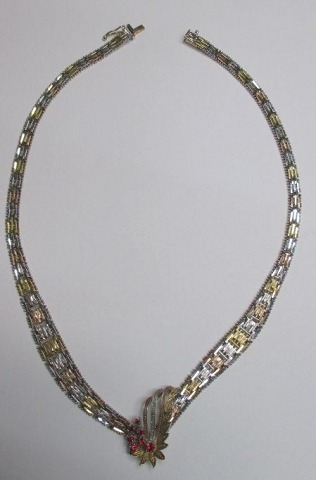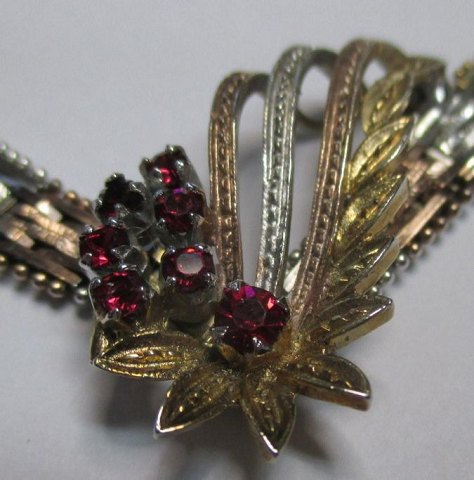 Halssmykke i sterling sølv, delvis forgyldt, Italien, 20. årh. Med 6 simili rubiner. L.: 42 cm. Stemplet.: 925 Italy.