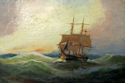 Jensen, Alfred (1859 - 1935) Tyskland: Marine med sejlskib i høj sø.