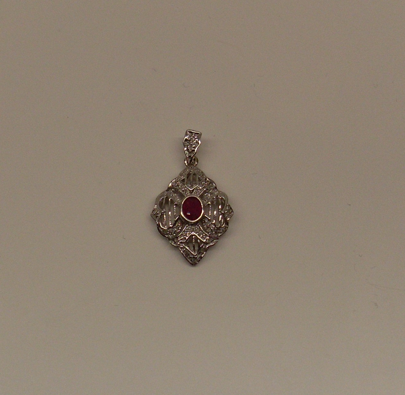 14kt hvidgulds vedhæng med rubin og brillanter.