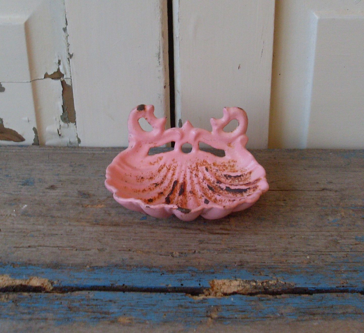 Fransk sæbeskål i lyserød emalje.