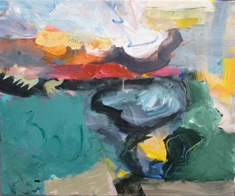 Balling, Jan (1953 - ) Danmark: Udsigt til modlys. Acryl på lærred. Signeret.: Jan Balling 2001. 40 x 50 cm.