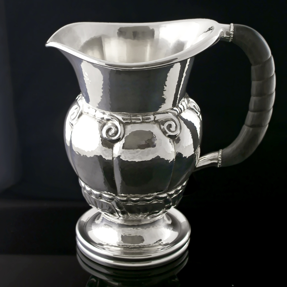 Georg Jensen Stor kande i Sterling Sølv #7 A med greb i Ibenholt.