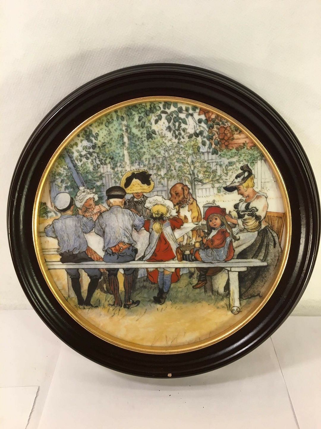 Kgl. platter med motiv efter Carl Larsson. Fremstillet i 9500 eksemplarer, rammer af sortlakeret træ. Ø 26 cm.