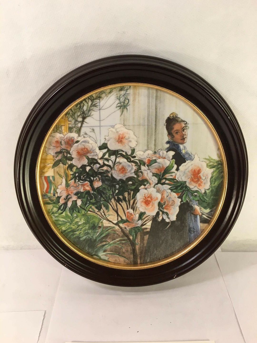 Kgl. platter med motiv efter Carl Larsson. Fremstillet i 9500 eksemplarer, rammer af sortlakeret træ. Ø 26 cm.