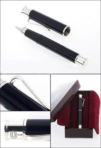 Georg Jensen Kuglepen i Sterling Sølv og mørk blå lak