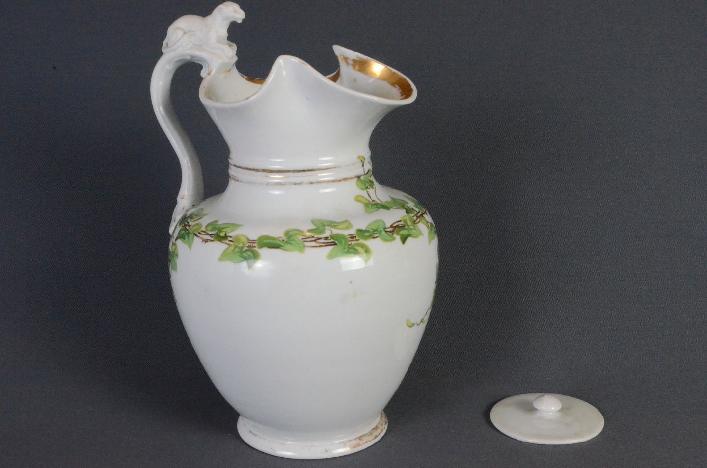 Lions pitcher for chocolate (male lion), porcelain, NOTE Small chips on the lid