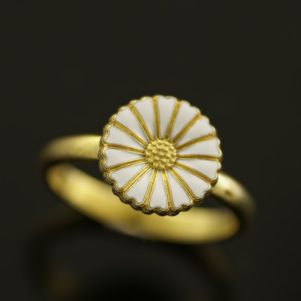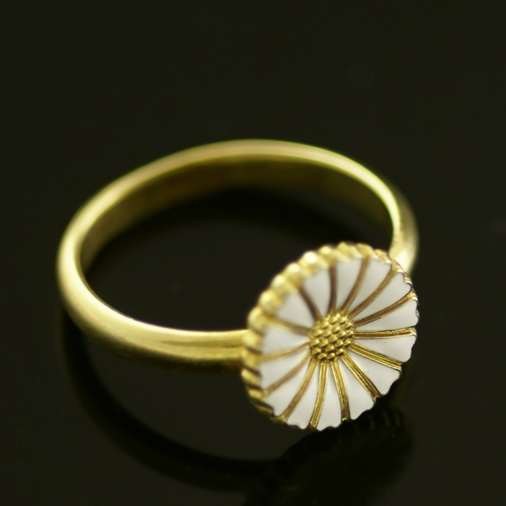 Bernhard Hertz. Marguerit / Daisy Ring i forgyldt Sterling Sølv med hvid emalje.