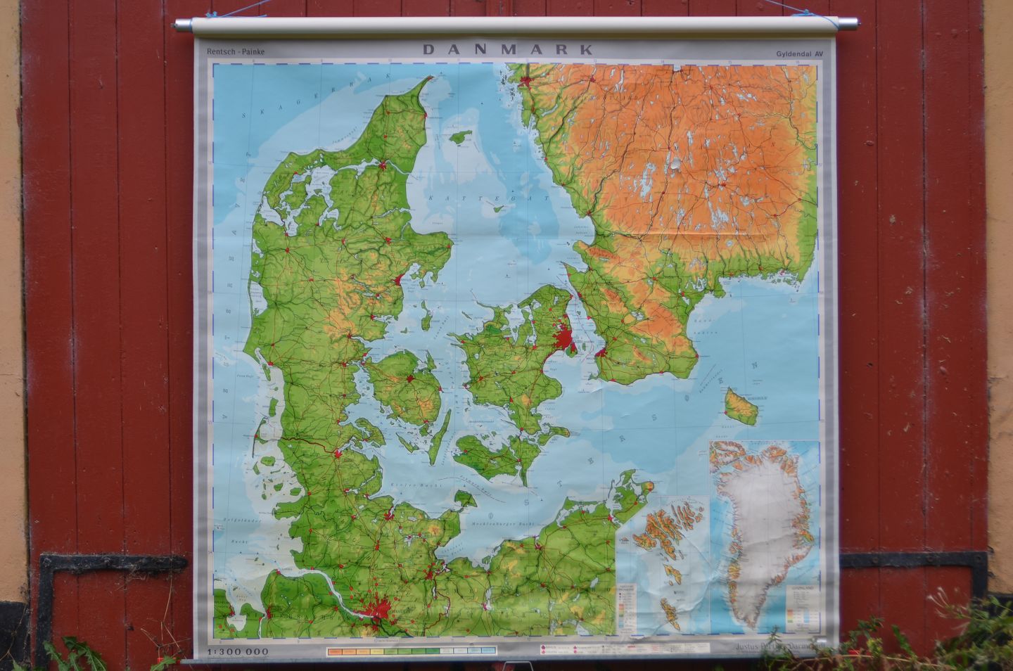 Skolekort: Danmark, Monteret på selvruller og med forlænger, Kortmål: 180 x 180 cm, (skolekort nr. 5)