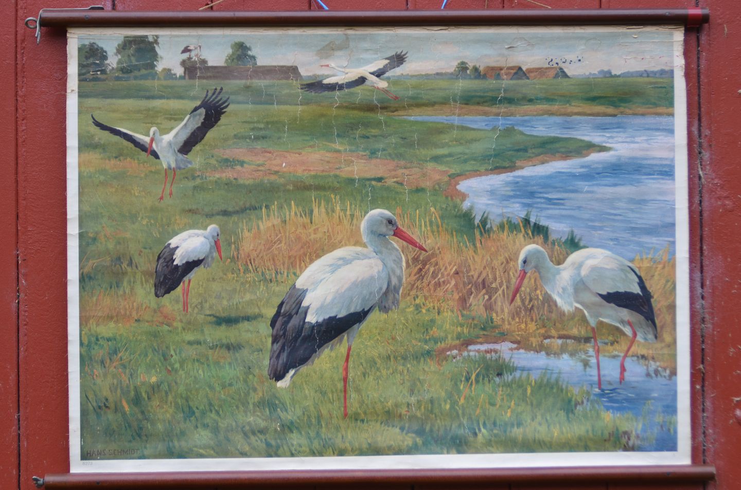 Anskuelsestavle med træstokke: Storke, Billedmål: 60 x 90 cm, (anskuelsestavle nr 1)