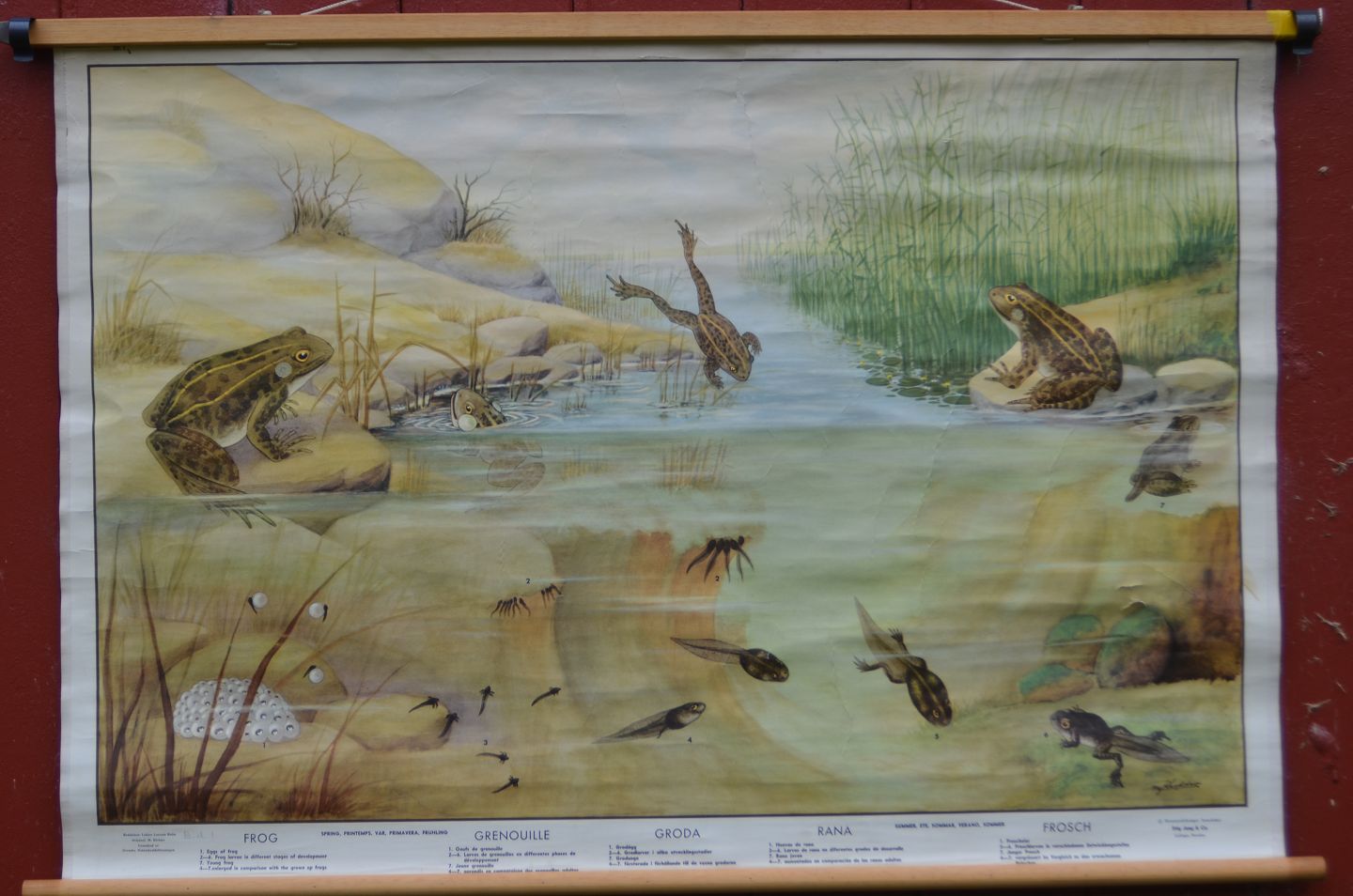 Anskuelsestavle med træstokke: Frøer og haletudser, Billedmål: 68 x 100 cm, (anskuelsestavle nr 3)